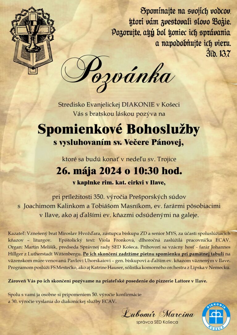 Bratia a sestry, pozývame vás sledovať slávnostné Služby Božie na 1. slávnosť svätodušnú z evanjelického a. v. kostola v Batizovciach. Uskutočnia sa 19. 5. 2024