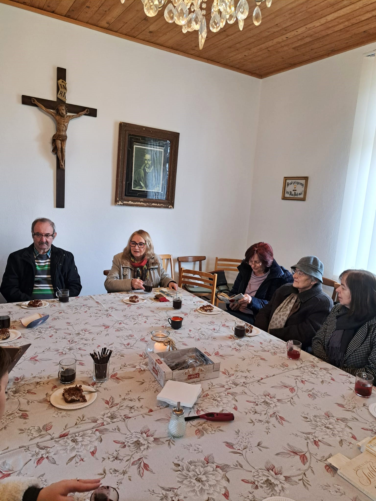 Už tradičné posedenie pri čaji a káve bolo tentokrát venované básňam, ktoré predniesli sestry Evka Riečanová, Zuzka Murgašová a brat farár Ján Čáby.