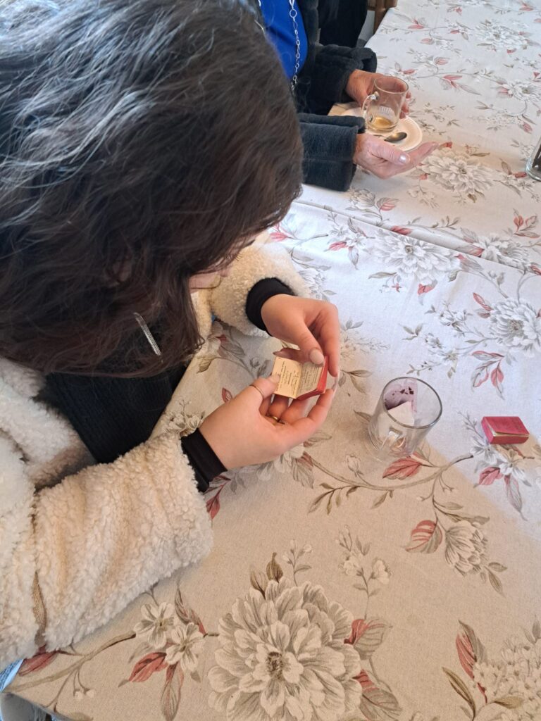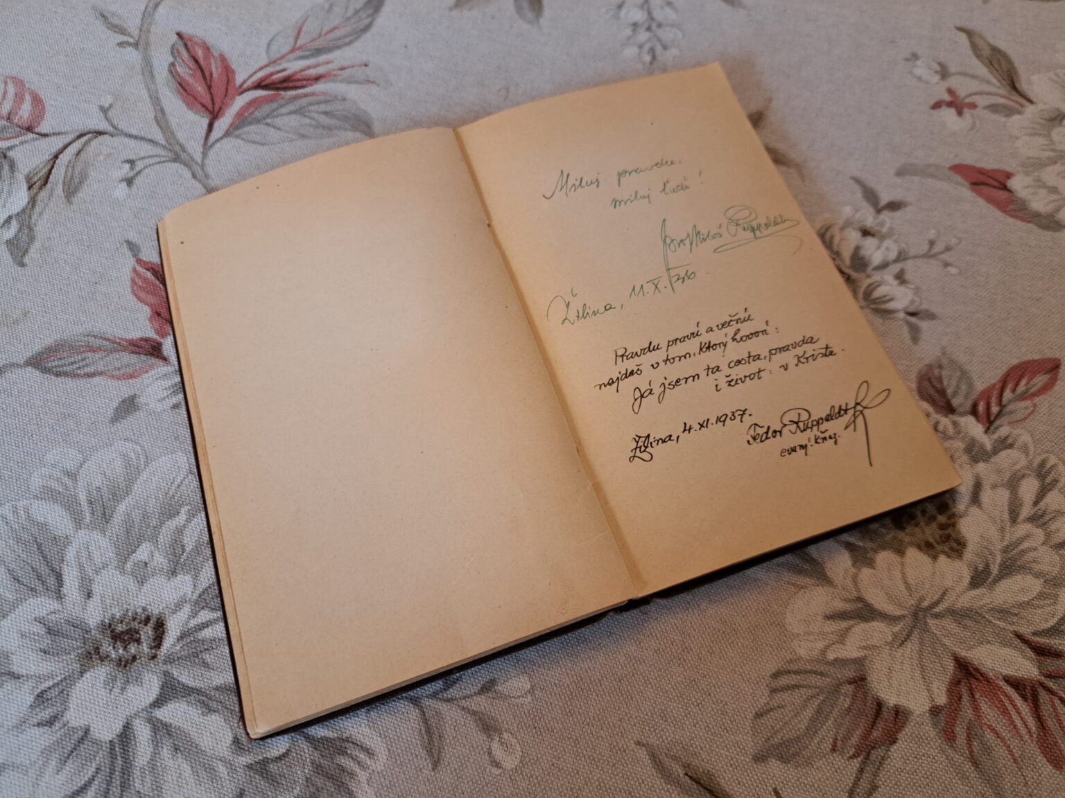 Sestra Evka Riečanová nás však prekvapila aj celkom jedinenčnými miniatúrnymi knižočkami zo svojej knižnice. Najhodnotnejšou knihou však bol pamätník Horislava Riečana, brata pána prof. Bela Riečana. Mohli sme si v ňom prečítať venovania mnohých významných slovenských osobností – napr. Martina Rázusa, Terézie Vansovej, Viliama Figuša Bystrého, Fedora Ruppeldta, Samuela Štefana Osuského, či viacerých ďalších. Bola to jedinečná chvíľa byť tak blízko originálnym rukopisom týchto veľkých osobností národa i cirkvi.