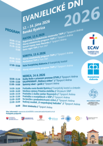 dovoľujeme si Vás srdečne pozvať na podujatie Evanjelické dni 2026, ktoré sa uskutoční v dňoch 12. – 14. júna 2026 v Banskej Bystrici.