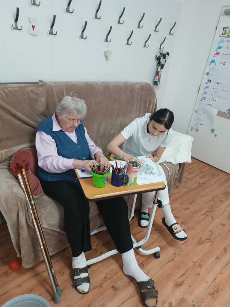 Jeho starostlivosť vidíme aj v spolupráci s Cirkevnou strednou odbornou školou sv. Terézie z Lisieux v Bánovciach nad Bebravou. Žiaci odborov sociálno-výchovný pracovník a vychovávateľ-opatrovateľ k nám neprichádzajú len kvôli praxi ,ale aj kvôli dobrovoľníckym aktivitám s úprimným záujmom o našich seniorov. Je krásne vidieť, keď si žiaci sami od seba pripravia kultúrny program a dožadujú sa spoločného stretnutia, alebo keď počas prázdnin prichádza dobrovoľníčka s koláčikmi a úsmevom.